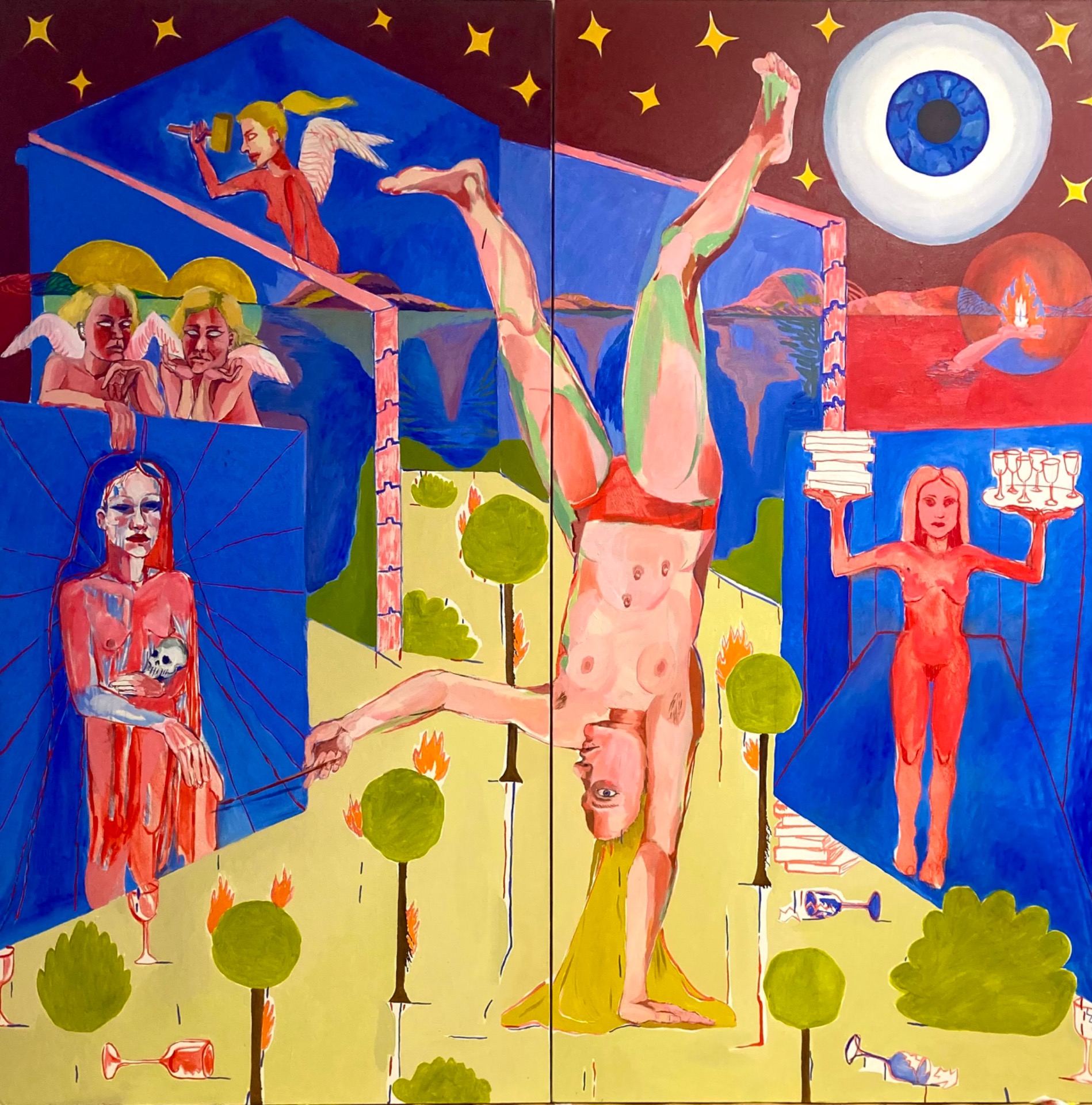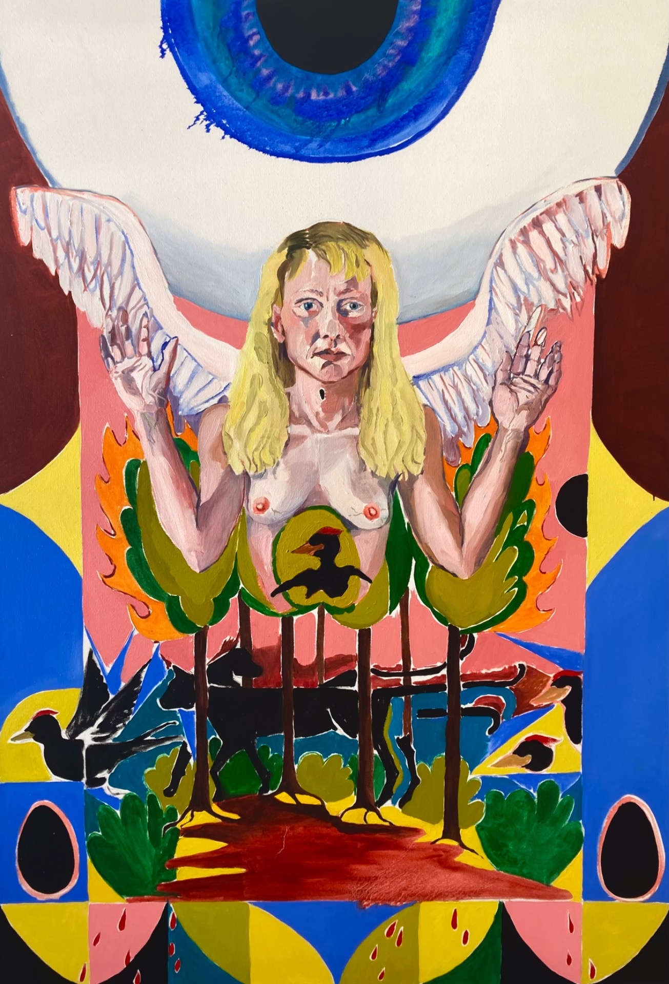 Enkelit maalauksissani ovat ihmisen kuvia ja maalauksen ideoita. Enkelin idea on kuvata jotain, joka nimenomaan ei ole ihminen, mutta taidehistoriassa enkeli on ottanut ihmisen ulkomuodon. Miten enkeli voi kuvata jotain epäinhimillistä ihmisen ruumiissa? Enkelin kuva on ilmestymisen kuva. Maalaus niin kuin enkelikin on eräänlainen ilmestys.